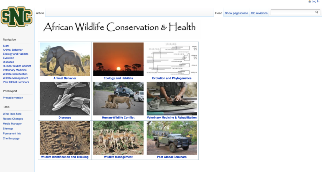 Created by Dr. Adam Brandt who uses a wiki application on his domain to provide an interactive digital assignment around African Wildlife Conservation that he builds on from year to year. This wiki was deployed on the domain and used as an assignment as part of the Fall 2019 / Winter 2019 global seminar. The site is intended to be a resource for students to build upon over time.